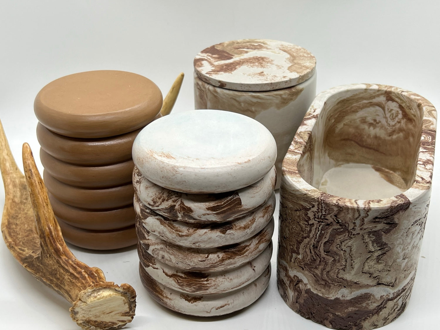 Try one of our hand-poured candles in a custom, handmade cement jar! These beautiful vessels are the perfect complement to brighten any space with an aromatic smell and beautiful aesthetic.